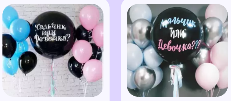 - Гигантские шарики — используются для создания эффектного момента раскрытия пола ребёнка.